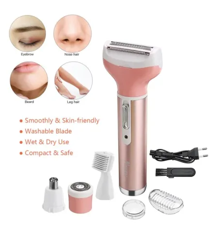 Geemy GM-3074 is a compact, cordless grooming kit designed for precise, skin-friendly trimming across face and body. Four quick-swap heads cover nose/ear hair, eyebrow shaping, facial peach-fuzz, and a full-size foil shave for underarms and body lines. The USB-rechargeable drive provides convenient cordless use, while detachable, washable heads make cleaning simple. Its portable size and ergonomic grip enable accurate control at home or during travel.