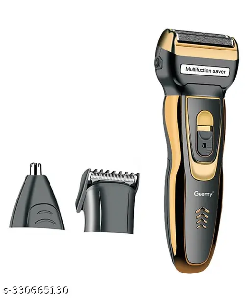 The GEEMY GM-595 Rechargeable 3-In-1 Electric Trimmer for Men is a complete grooming solution designed for beard trimming, hair cutting, and nose & ear hair removal. This professional grooming kit comes with 3 interchangeable heads including a beard trimmer, hair clipper, and nose/ear trimmer, making it ideal for full face and body grooming. Powered by a high-speed silver palloy motor, it delivers efficient performance with low vibration and smooth cutting. The stainless steel sharp blades ensure precise trimming without skin irritation. Featuring an ergonomic, lightweight, and compact design, it is easy to handle and perfect for home or travel use. The rechargeable Ni-Cd battery provides up to 45 minutes of cordless use after 4 hours of charging. Adjustable comb settings allow you to maintain your desired stubble length effortlessly.