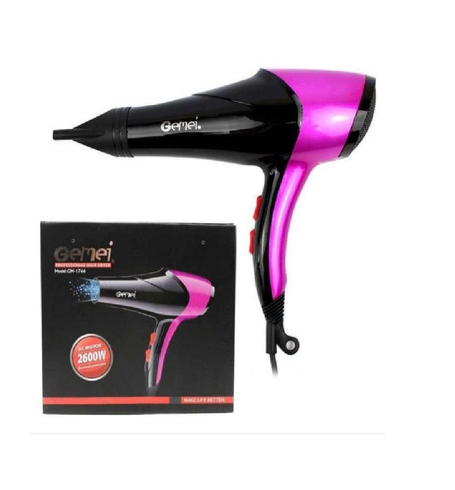 Gemei GM-1766 PROFESSIONAL HAIR DRYER(2600 WATTS) Hair Dryer This is an excellent hair dryer for the frequent travelers,The Hair Dryer can be set to two speed settings and has a narrow concentration which centers airflow to ensure better styling of hair. FEATURES & DETAILS= Power Required (Volts) : 220 – 240 V. Fordable :((5000 watts styling hair dryer)) This hair dryer can be plugged into any outlet. The Hair Dryer is a safe and convenient way to dry your hair and keep it looking good when travelling and it’s Easy to use. Polished and Shiny Look Less Hair Damage and Overheat Protection Fast Air Setting For Efficient But Gentle Drying Compact Design For Easy Handling Light Weight, Efficient, And Easy To Use Safe. [ pack of 1 ]