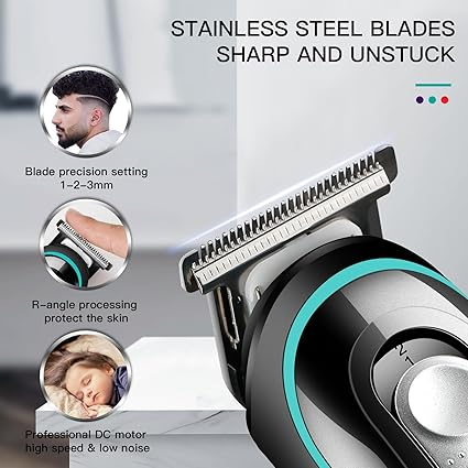 - PRECISION T BLADE HAIR TRIMMER: This hair trimmer’s precision T blades ensure professional level accuracy and sharpness, R angle design of the blade edge improves safety and comfort and reduces the risk of scratches and irritation. The blades offer three adjustable length settings perfect for cutting hair, trimming body hair, close trimming, refreshing liners, beards, sideburns and more, making it the perfect choice for men