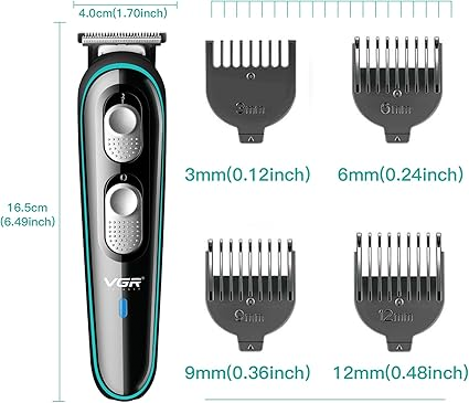 - CHOICE IDEAS FOR MEN: Grooming and haircutting set contains one cordless electric hair trimmer, 4 guide combs (3/6/9/12mm), 1 oil, 1 cleaning brush, 1 charging cable. Multi functional all in one design meets men’s haircutting needs. VGR professional mens hair clippers is an ideal mens choice for boyfriend, husband and father